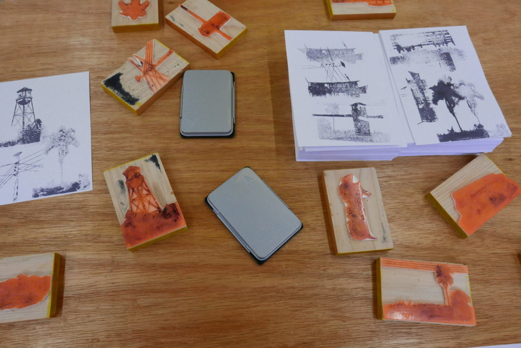Alexandre Sequeira, 12 Tampons de Fordlândia (détail). Table, tampons, encre, papier.